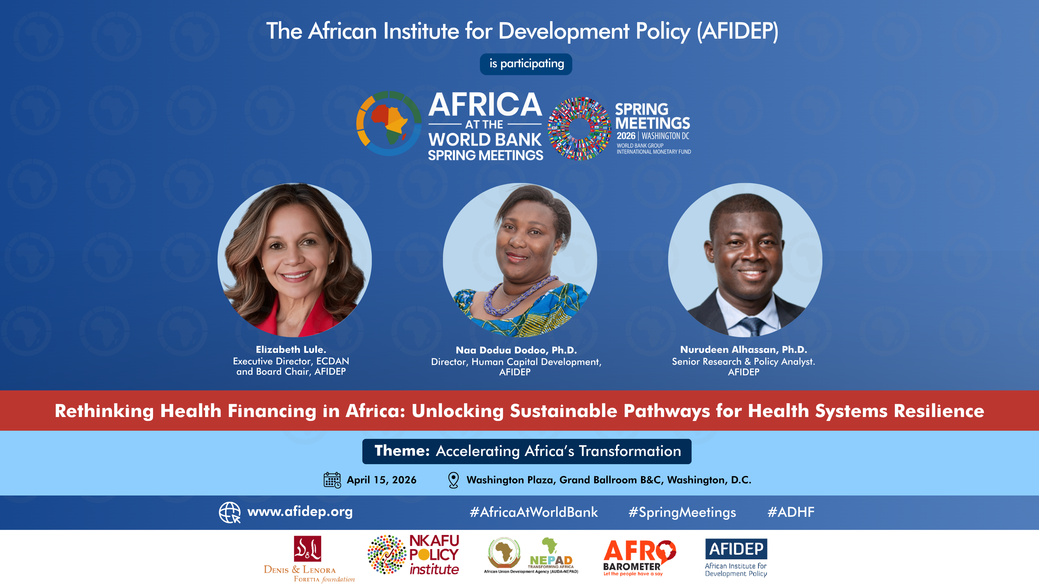 In response, the African Institute for Development Policy, alongside the Nkafu Policy Institute, African Union Development Agency, Afrobarometer, and the Denis and Lenora Foretia Foundation, is convening a high-level session during the Spring Meetings.