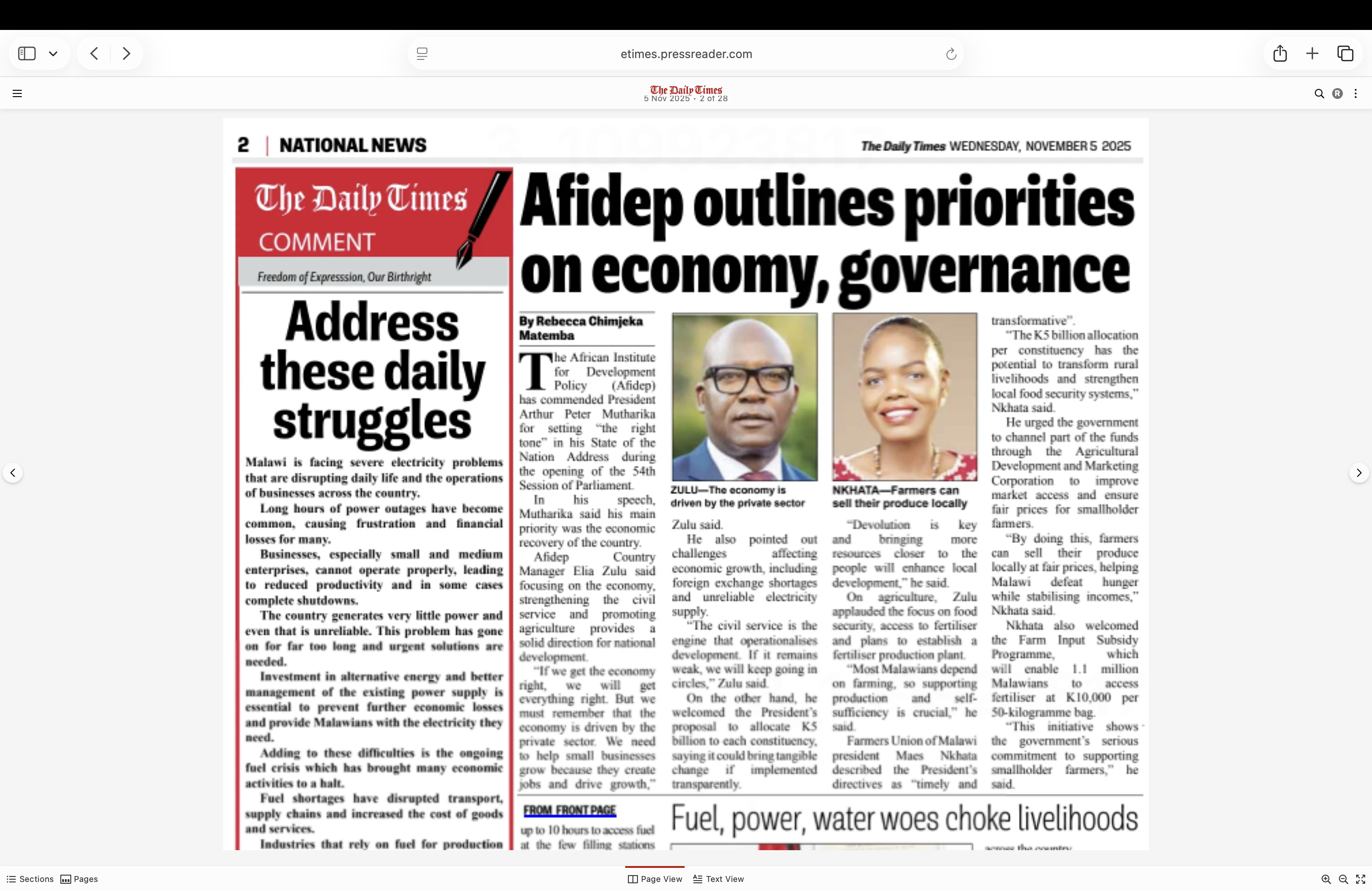 - Dr Eliya Zulu’s Interview with The Nation Newspaper on how AFIDEP will support the new Malawi administration to achieve Malawi’s Development (11 October 2025)