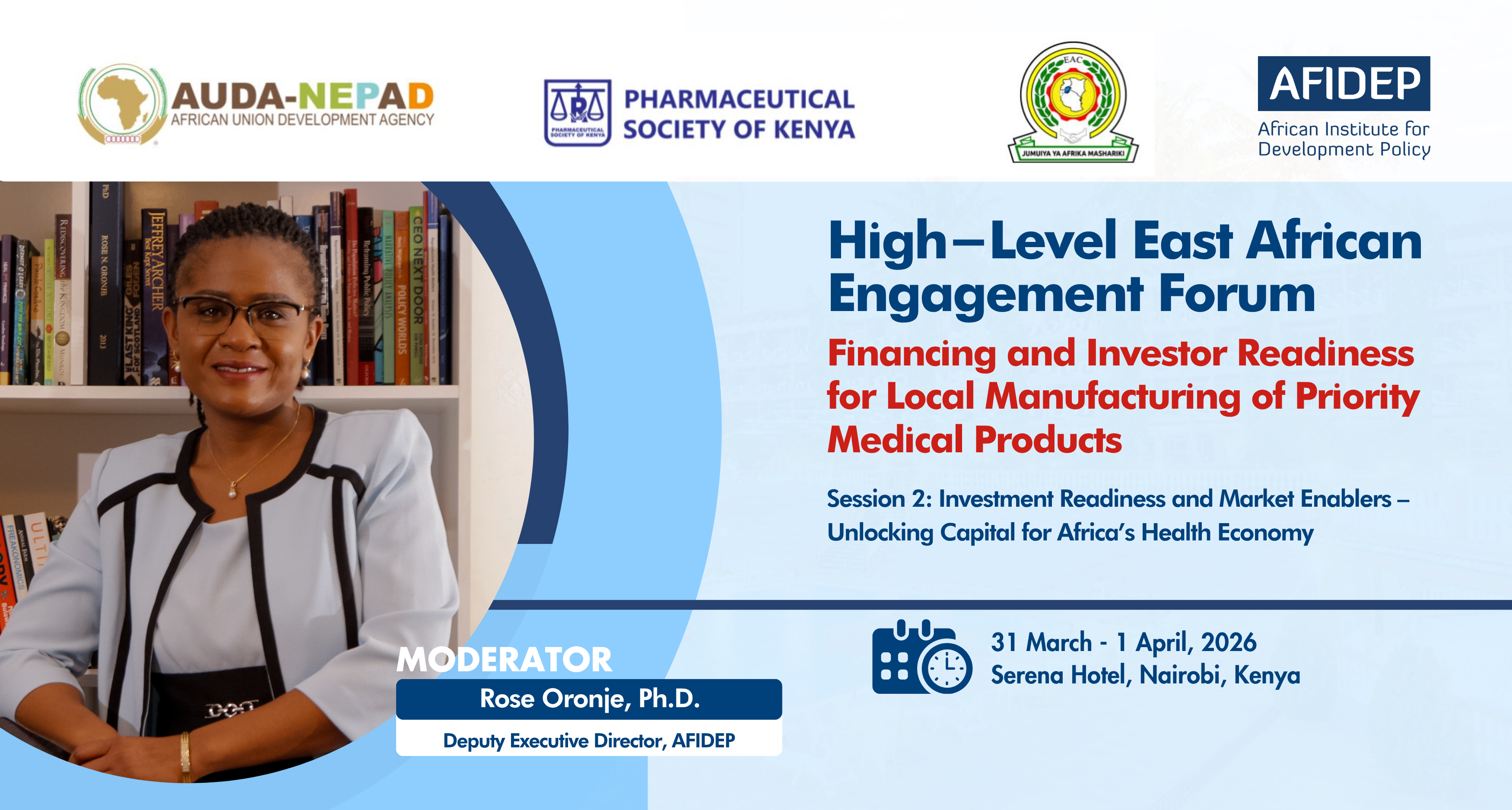AFIDEP’s Deputy Executive Director, Dr Rose Oronje, will moderate Session 2: Investment Readiness and Market Enablers – Unlocking Capital for Africa’s Health Economy.
