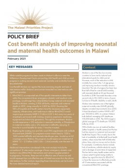 In this report, we have assessed the costs and benefits of delivering improved emergency obstetric and newborn care (EmONC) and nutritional supplements. Our analysis shows that many of these interventions have benefit-cost ratios (BCRs) of greater than 15 and could be very good uses of resources to improve maternal and neonatal health in Malawi.